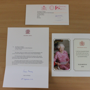 Deaf instructor, Nikki James, posted the handmade crafts to Her Majesty on the students’ behalf back in May. The package included hand drawn cards wishing Her Majesty a happy birthday and hoping she would enjoy the ceremony of Trooping the Colour. When Nikki collected the post on Thursday 29th September she was shocked to find the Queen’s insignia on the envelope.
