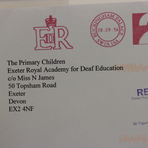 Our students are feeling immensely proud as a personalised letter and card from Her Majesty the Queen, addressed to the students, arrived at Exeter Deaf Academy on the 29th September. Her Majesty has sent her thanks to the primary students for their handmade cards sent on the occasion of her 90th birthday. Upon learning about the letter, one student hoped the Queen would now come and visit the class.